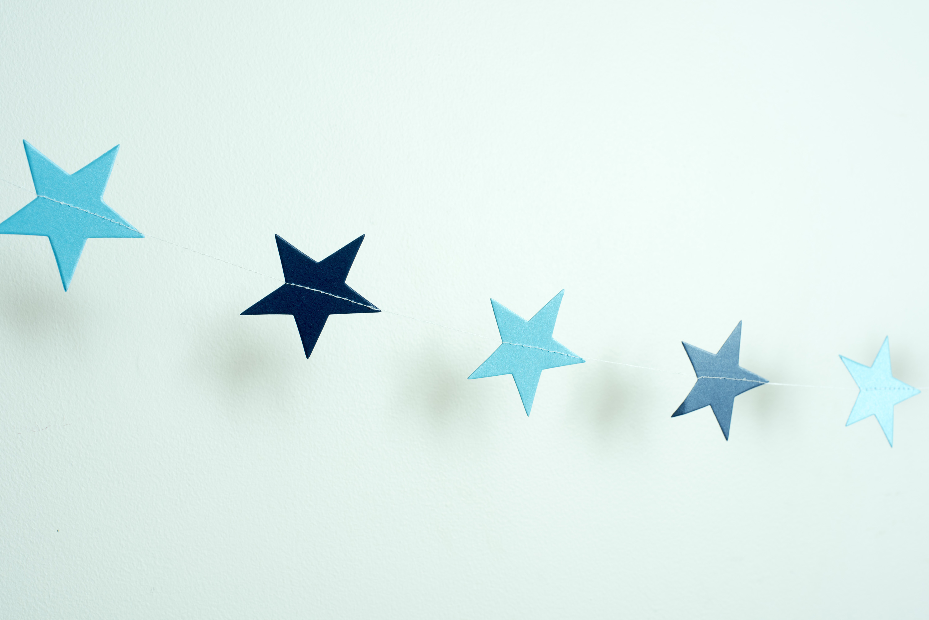 advent celebration christmas holiday noel yuletide season decorations garland copy space white background blue hanging string ornaments