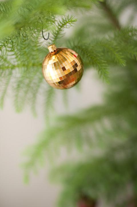 christmas festive fun holiday seasonal xmas yuletide ball bauble branches gold hanging hung tree single