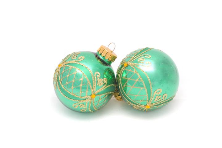 christmas festive seasonal holidays celebration xmas green ball bauble mirrored mirror reflections white isolated ball glass polished