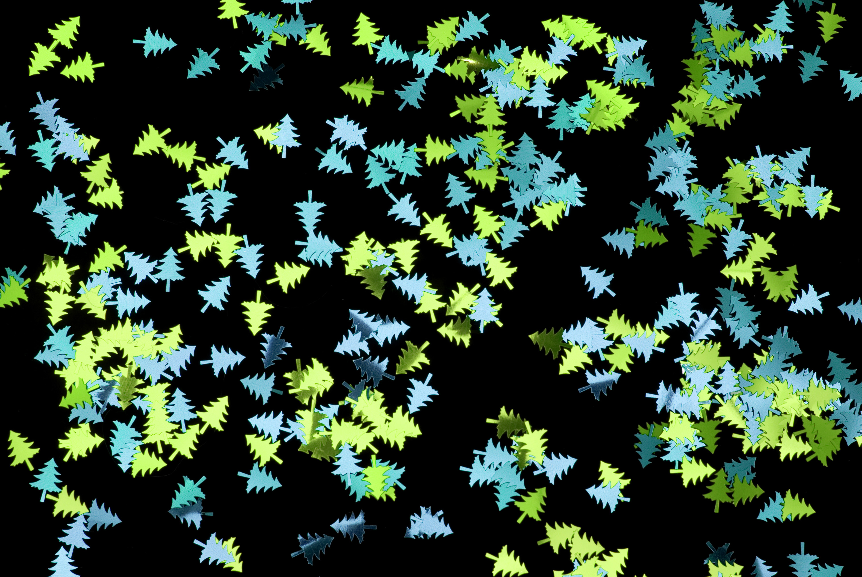 christmas festive seasonal holidays celebration xmas tree confetti shape metallic glitter shapes scattered backdrop background black shiny blue green
