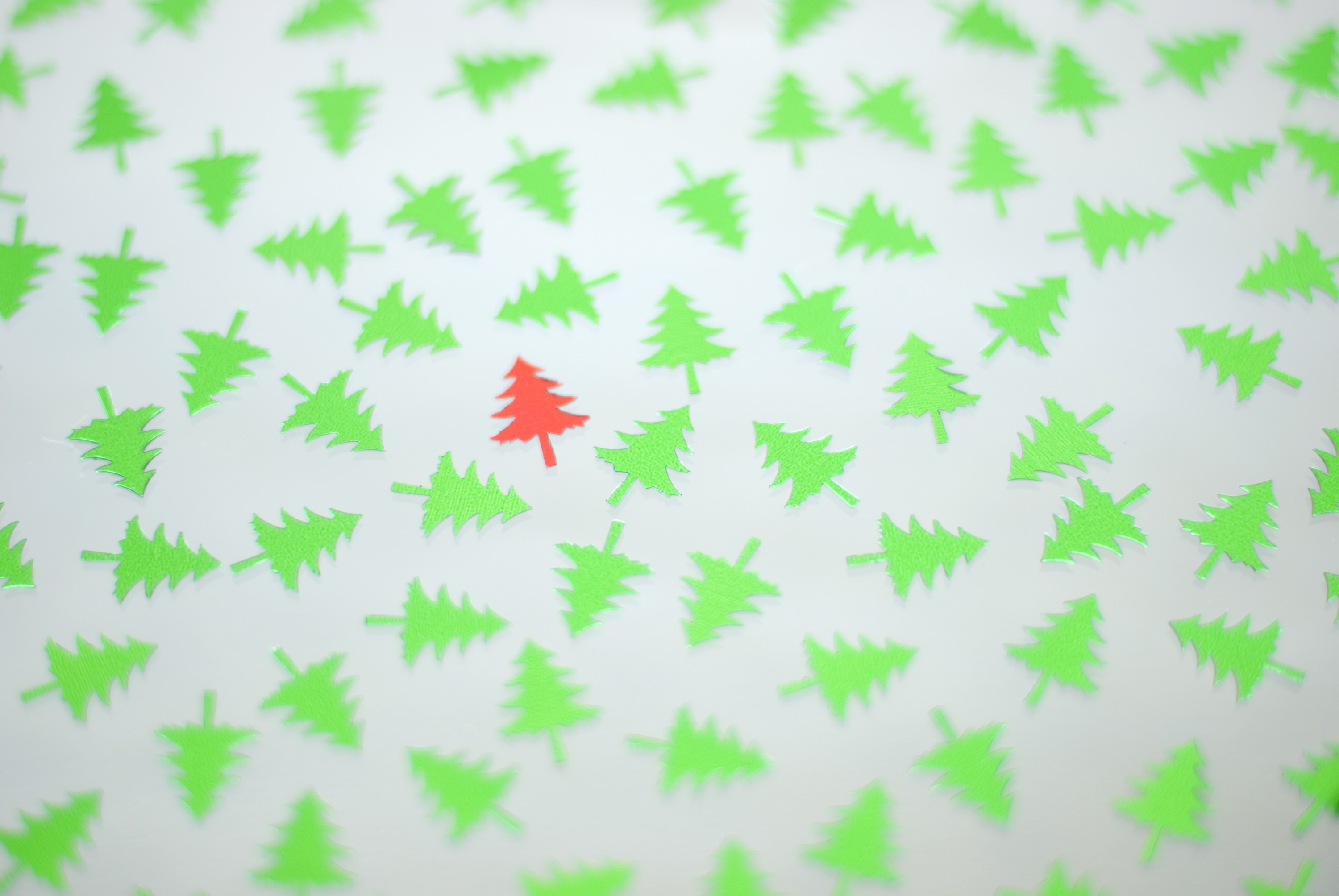 christmas festive seasonal holidays celebration xmas tree pine single alone one one off odd one out shape background texture random scattering sore thumb