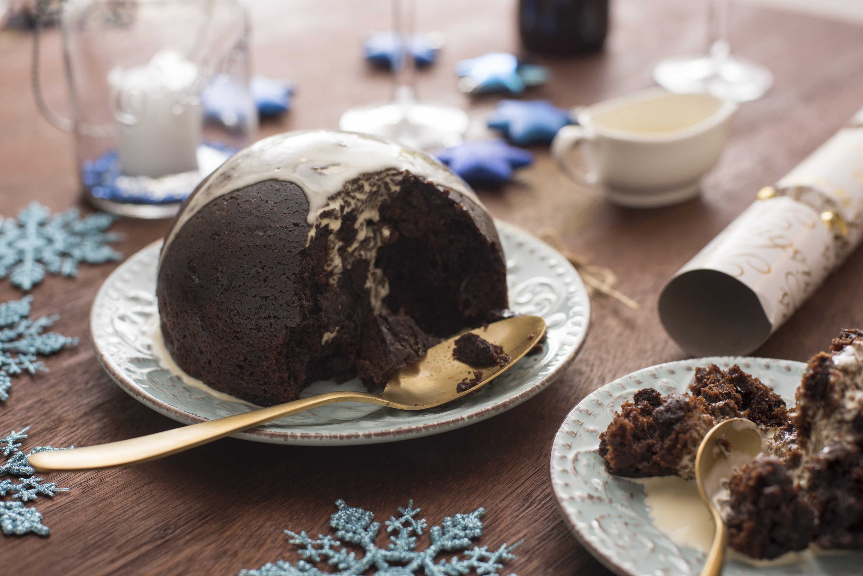 christmas festive xmas yuletide crackers dessert fruit meal pudding table traditional boiled brandy cream theme