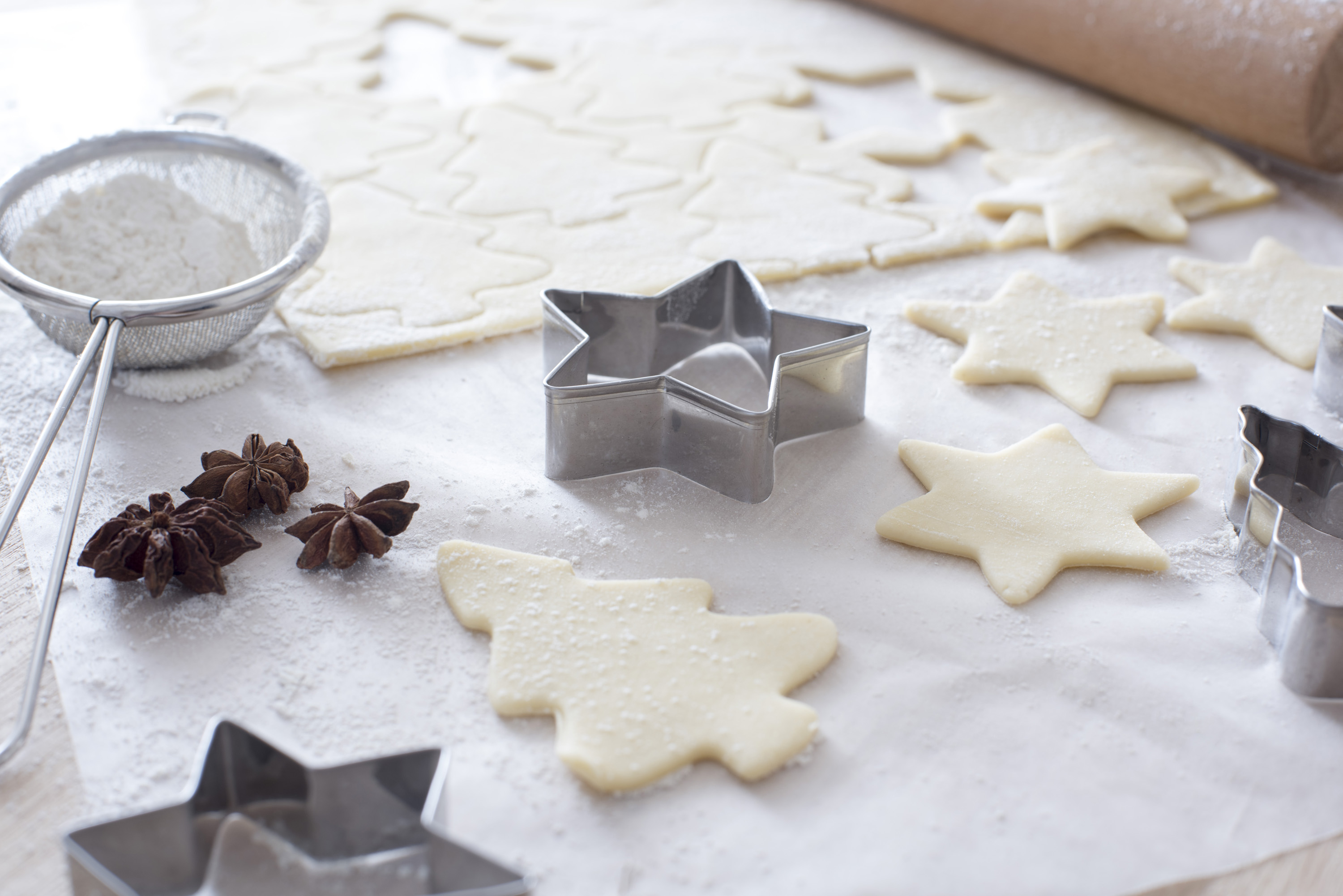 advent celebration christmas holiday noel xmas season baking homemade cookie cutters dough star star anise biscuits cookies