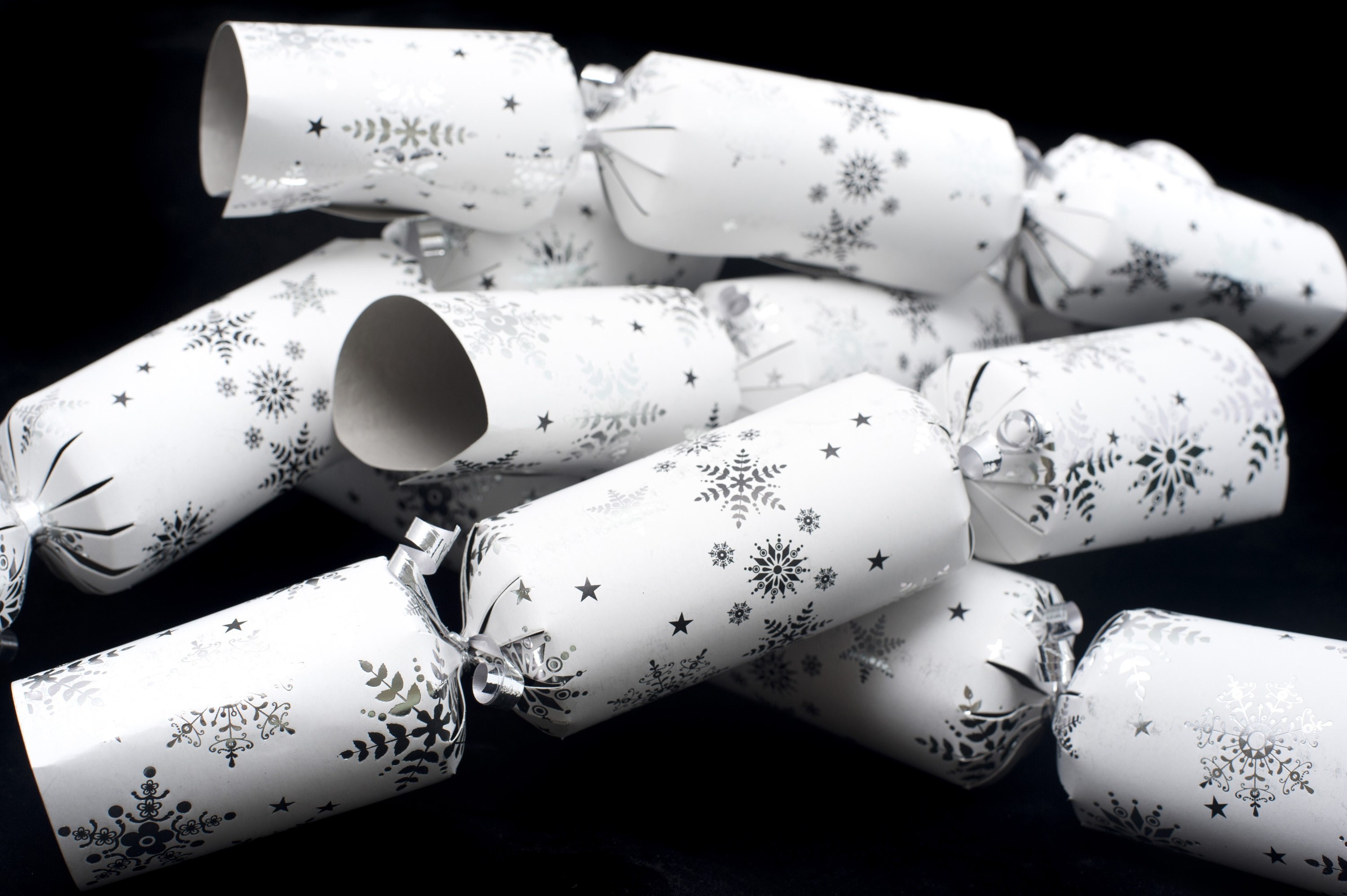 christmas holiday seasonal xmas bang crackers decorative gift pull snowflakes surprise table decoration celebration festive decoration party collection white packaging traditional