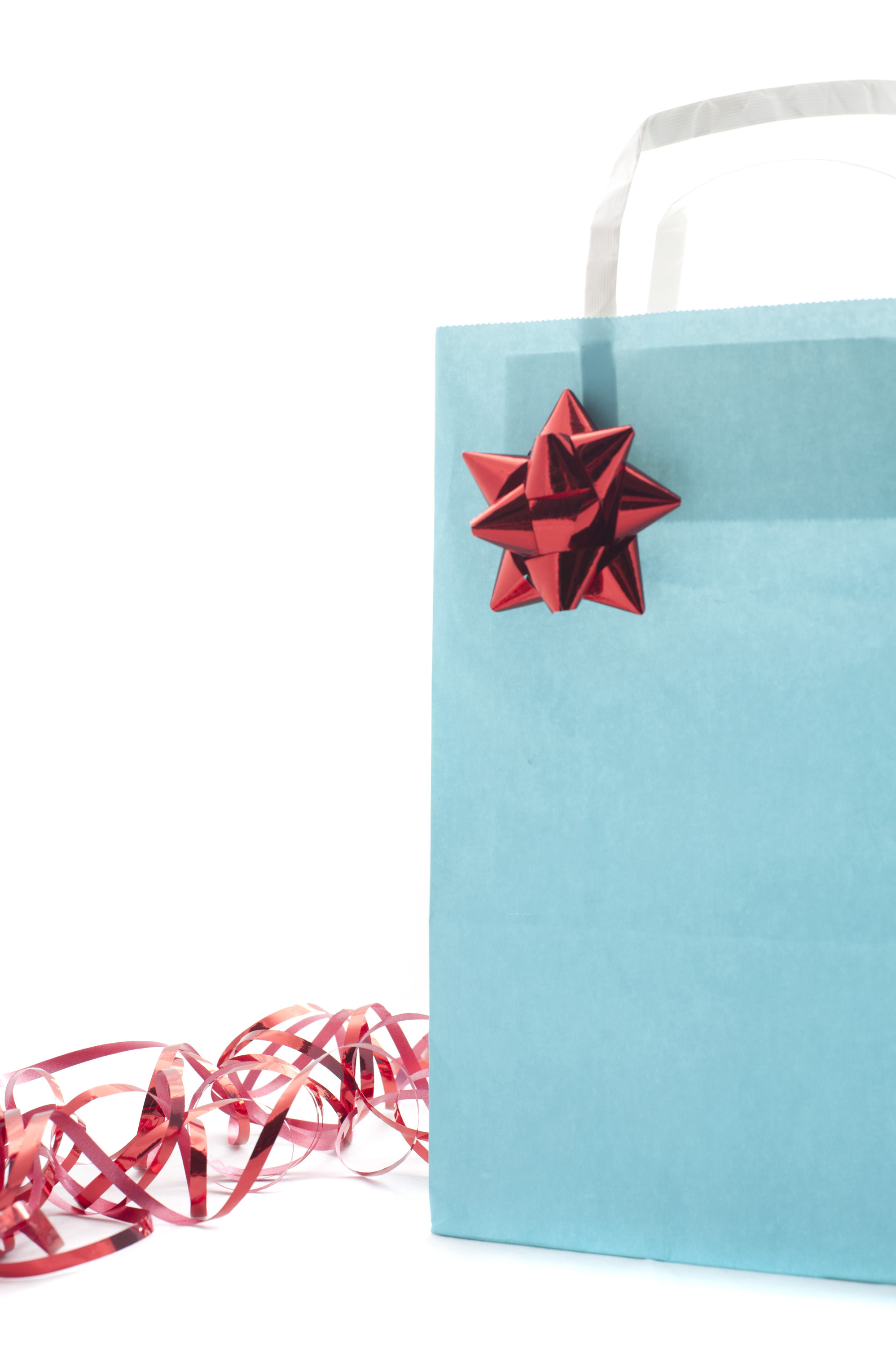 bag christmas gift holiday present seasonal shopping xmas bow decorated festive paper red ribbon sales