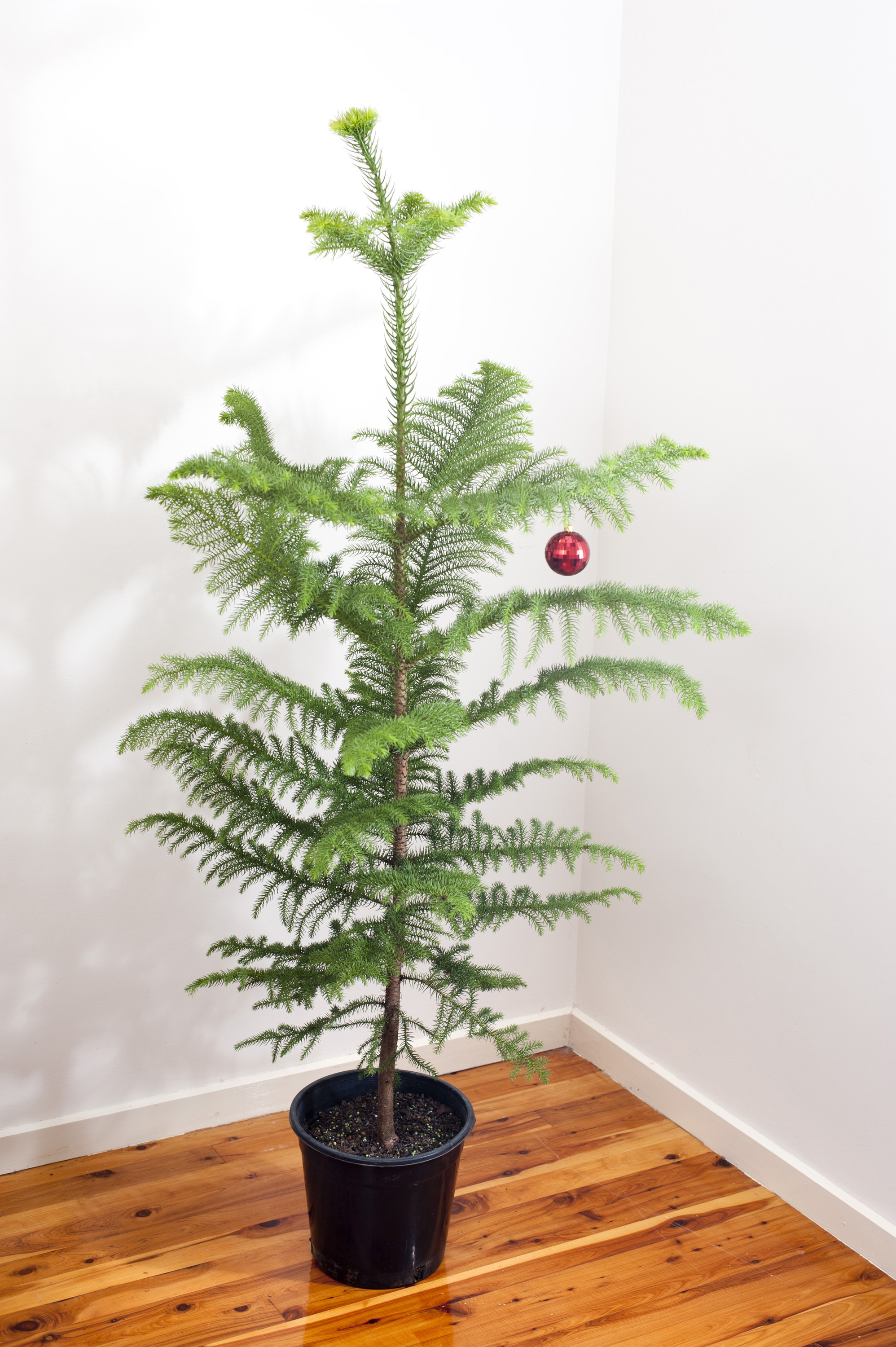 christmas christmas tree holiday indoor norfolk island pine seasonal tree xmas evergreen natural bauble decoration red tub home plant ornament potted celebration tradition