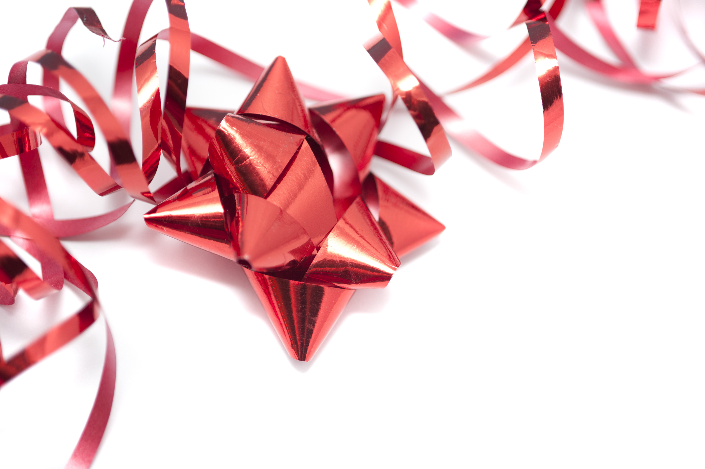 bow celebration christmas copy space festive gift holiday on white packaging ribbon twirled xmas