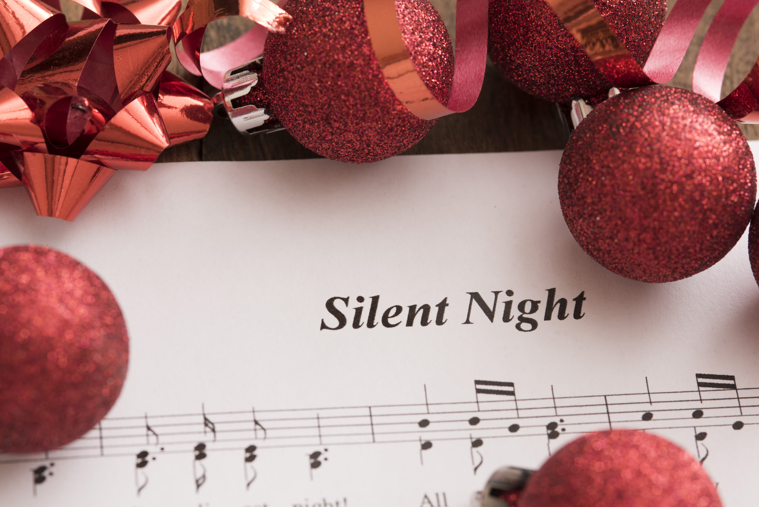 celebration christmas holiday navidad noel xmas advent decoration balls baubles carol music red score silent night