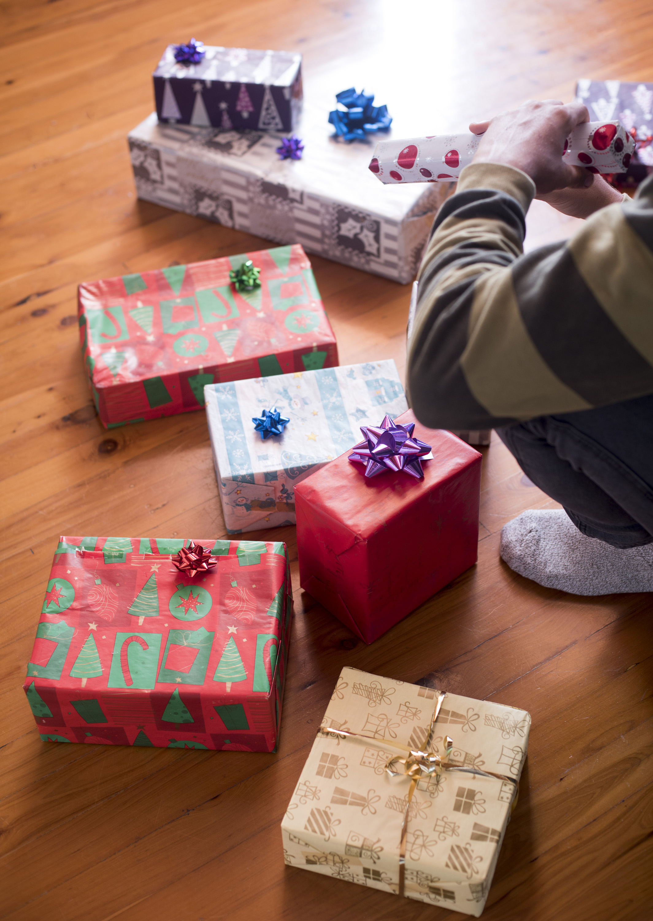 celebration christmas gifts holiday presents season xmas child opening unwrapping festive gift-wrapped person surprise unidentifiable