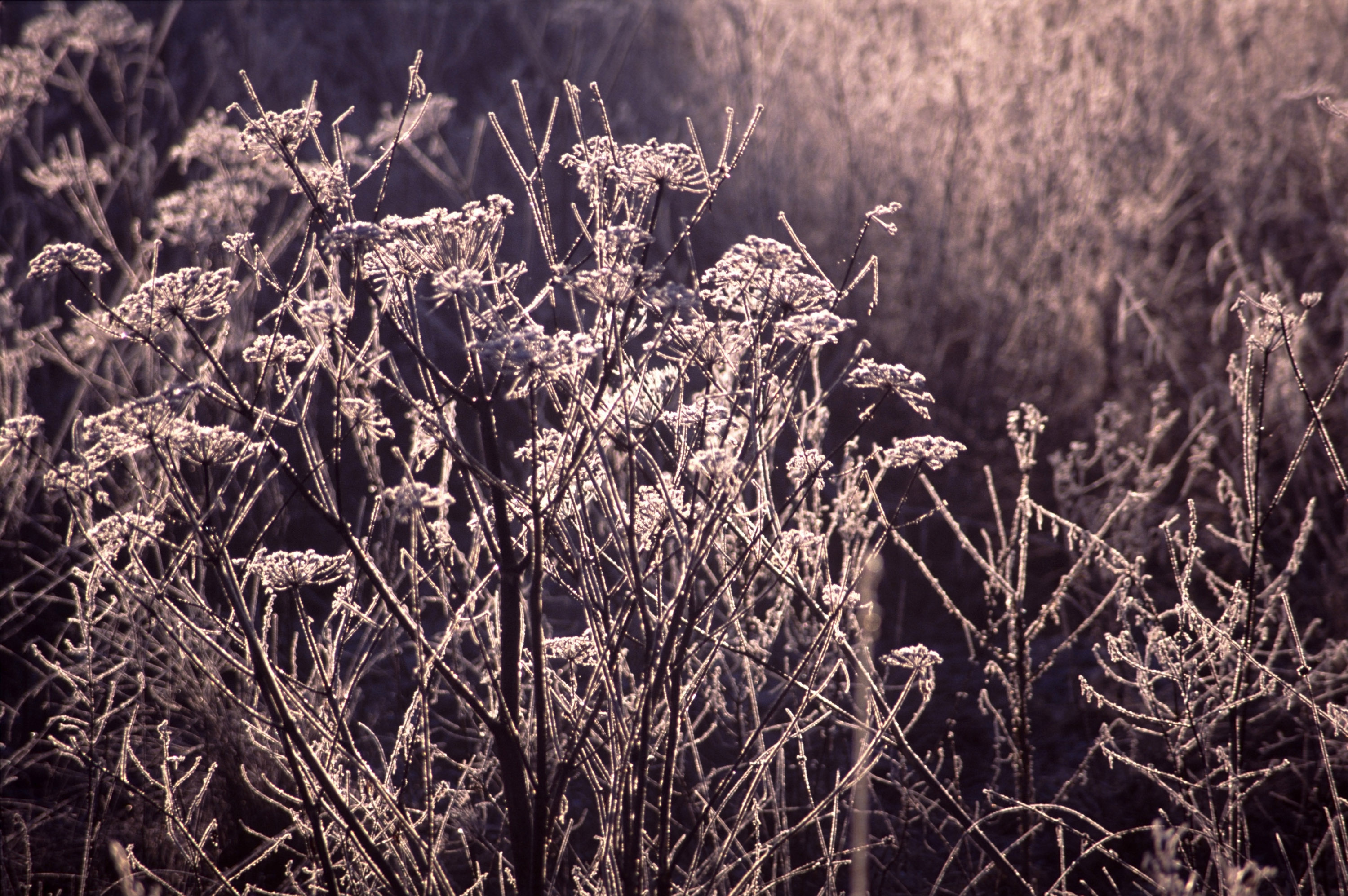 plant frost frosting winter white icy cold wintery seasonal sparkle reflective bright crisp frozen backlit contre jour against the light glint glinting cold snap