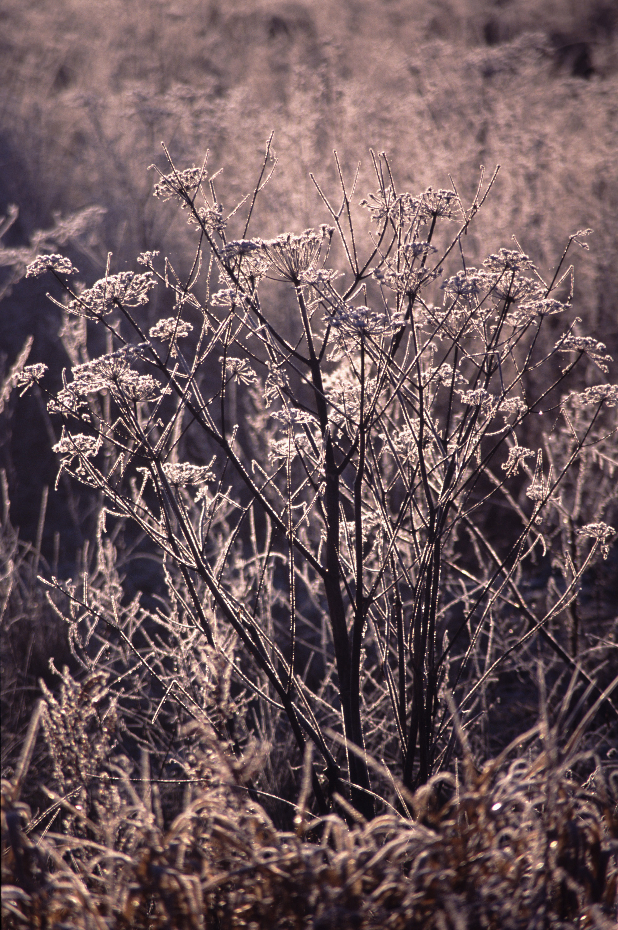 plant frost frosting winter white icy cold wintery seasonal sparkle reflective bright crisp frozen backlit contre jour against the light glint glinting