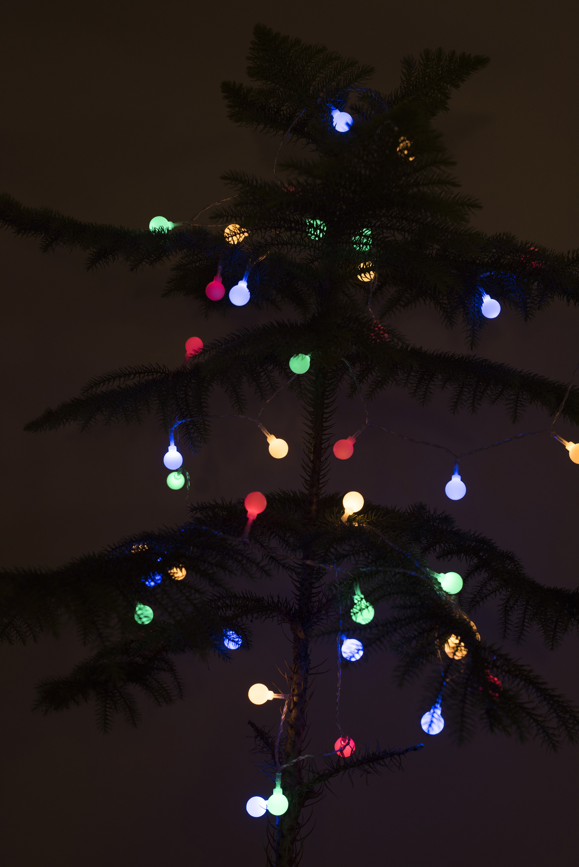 celebration christmas decorated festive holiday lights multicolored dark low key night noel pine sparkling tree xmas yuletide